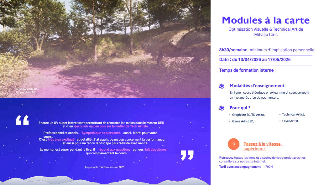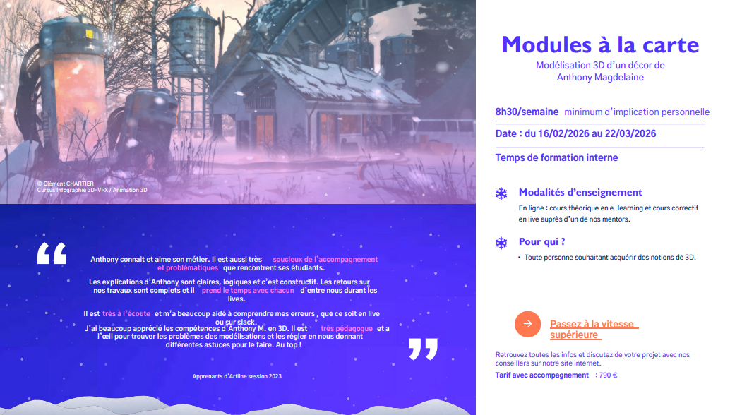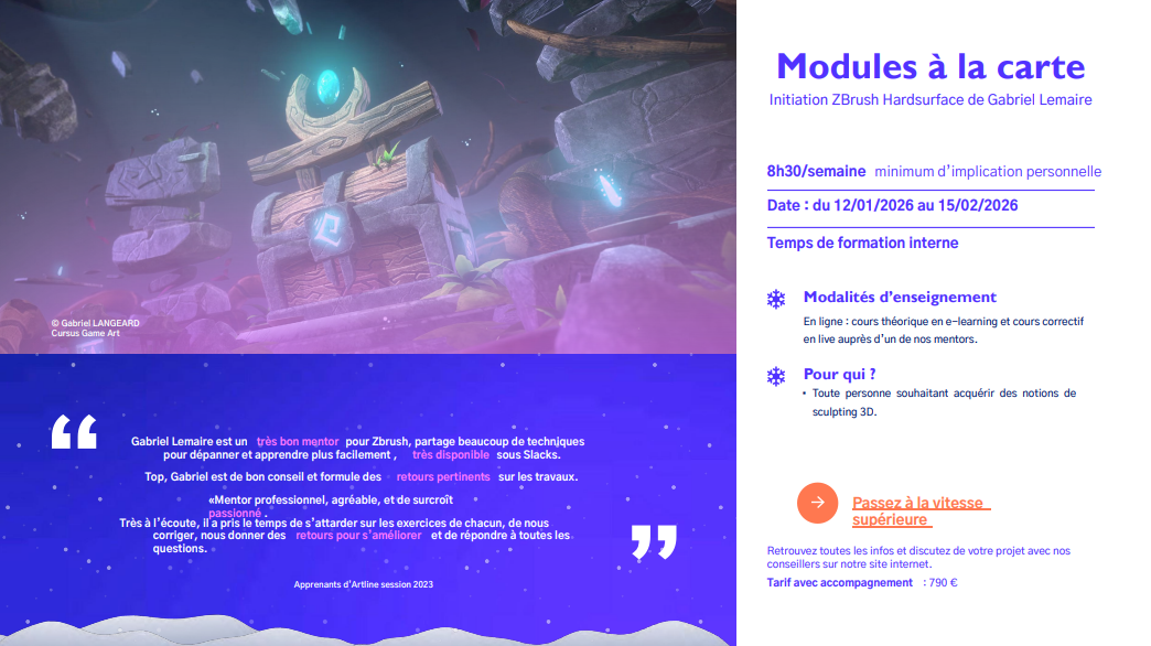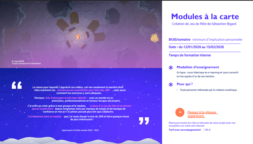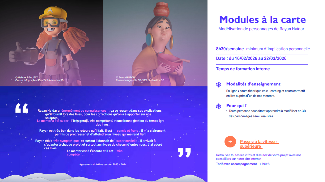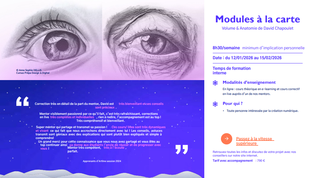 Le temps d'un module ou d'un parcours entier, rejoignez la communauté des apprenants Artline et spécialisez-vous dans le ou les domaines qui vous intéressent, le tout sans engagement !